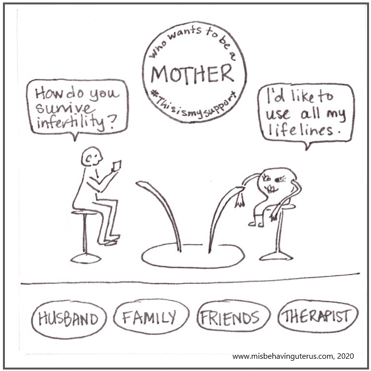 My fertility journey took me through recurrent pregnancy loss (RPL) and secondary infertility (SI) which is infertility after a pregnancy. Along the way I was diagnosed with polycystic ovaries (PCOS) which is the most common cause of infertility among women. They also found I had a septate uterus (SU) which is a congenital abnormality that I had surgically removed. There were other plenty of other diagnoses along the way, but I wanted to call those out to help explain the drawing. The other acronyms are for male factor (MF) infertility, premature ovarian failure (POF), endometriosis (ENDO), and luteal phase defect (LPD) which can all be causes of infertility.